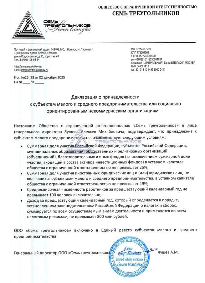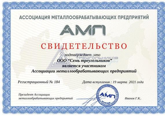 «Семь треугольников» — участник Ассоциации металлообрабатывающих предприятий.